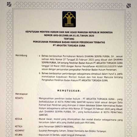 - Tidak melibatkan PT. TORSADA apabila tertuduh/tersangka atau terbukti melanggar hukum